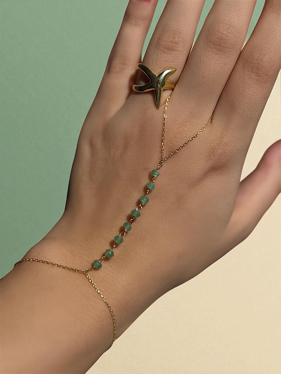 925 Ayar Pastel Yeşili Taş Sıralı Minimal Şahmeran Jovi